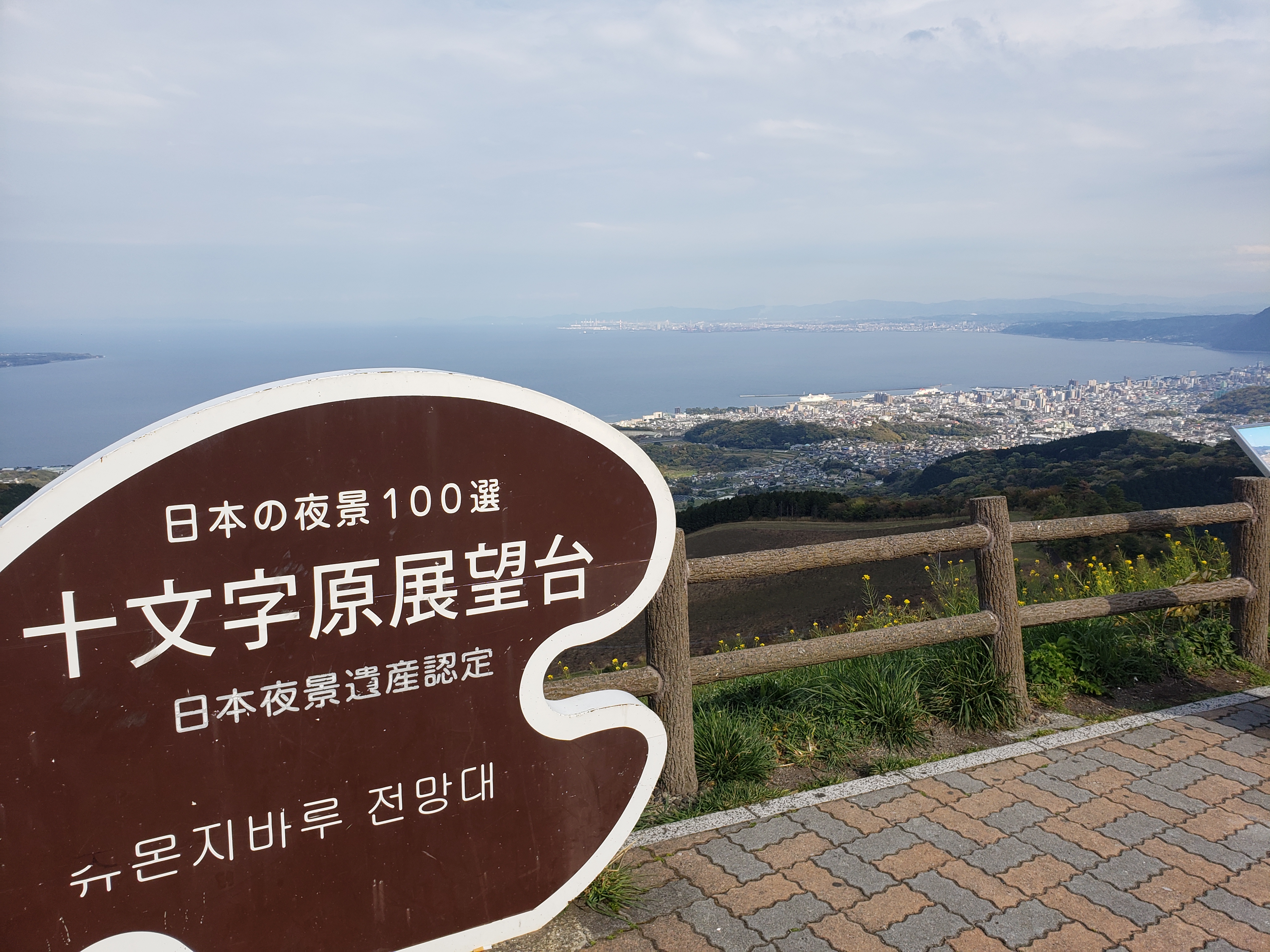 날씨가 좋은 날은 멀리 시코쿠까지 보입니다. 전망대에서 바라보면 오른쪽은 오이타시, 바로 앞에 보이는 곳이 벳푸시, 사진에는 없지만 왼쪽 편은 오이타공항 방면입니다. 이렇게 이곳은 벳푸만과 주변 지역의 전경을 한눈에 내려다볼 수 있는 최적의 장소입니다.